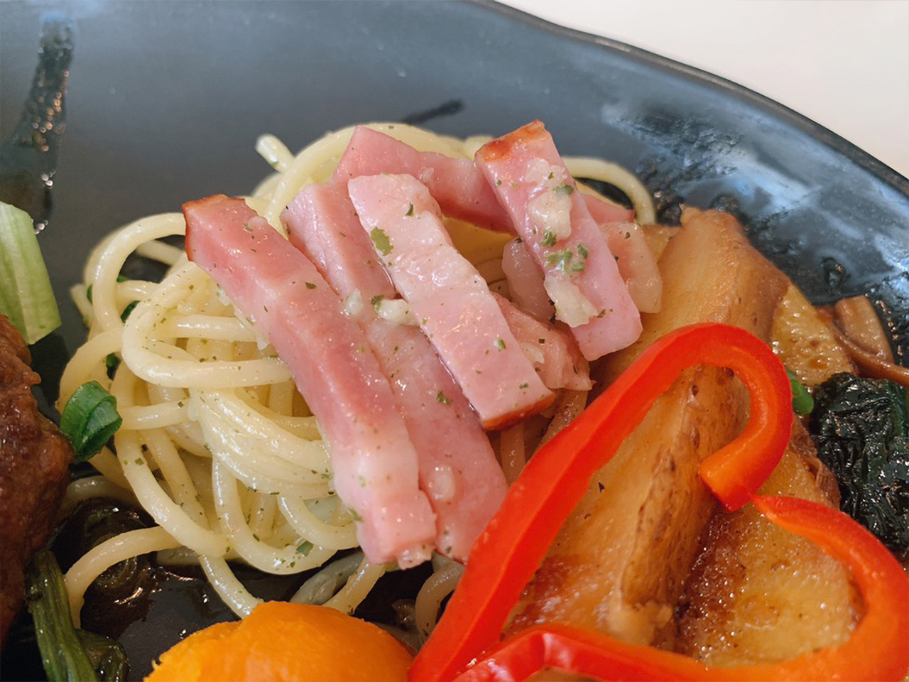 ナポリタンはトマトソースだけではなく具沢山、強気にガッツリ系と謳うだけあります。