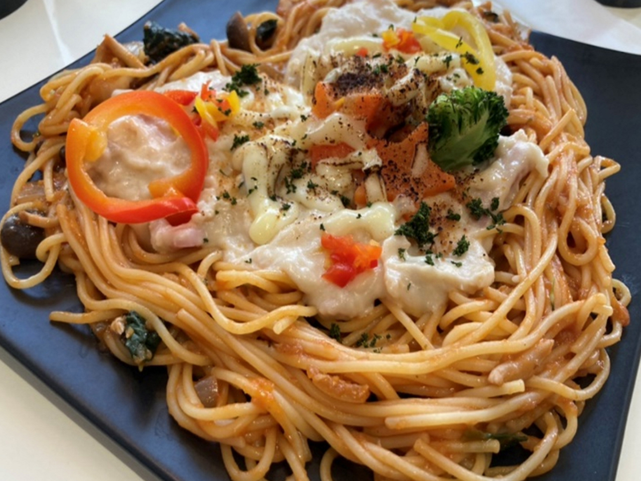 オススメを店員さんに伺い、ガッツリ系はグラタンパスタだそう。決まりました、今日のパワーフードはグラパスで確定。