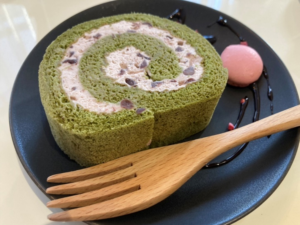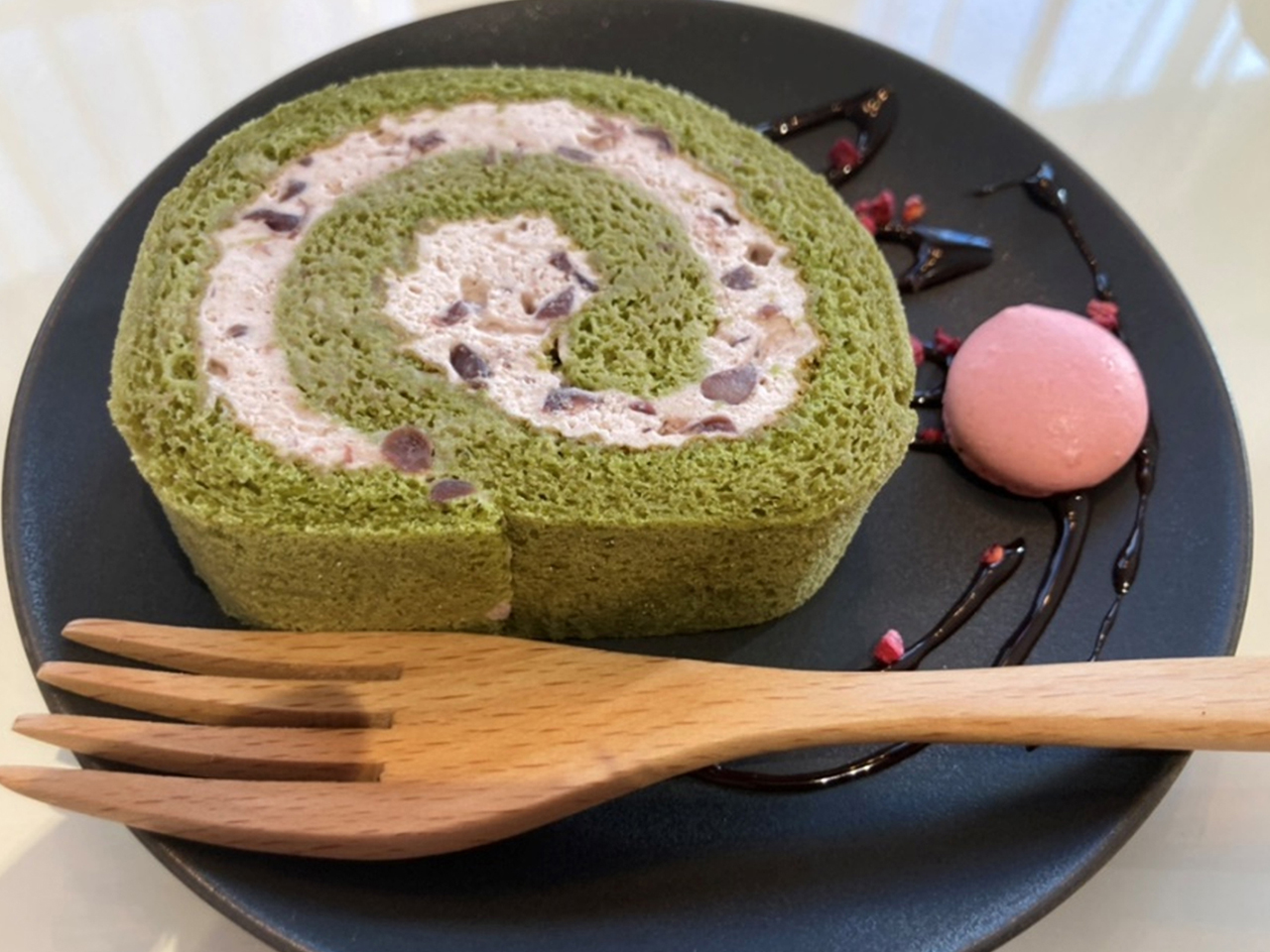 抹茶のロールケーキって絶対間違いないですよね。しっとりとした抹茶の生地と餡子の生クリームがよく合います。