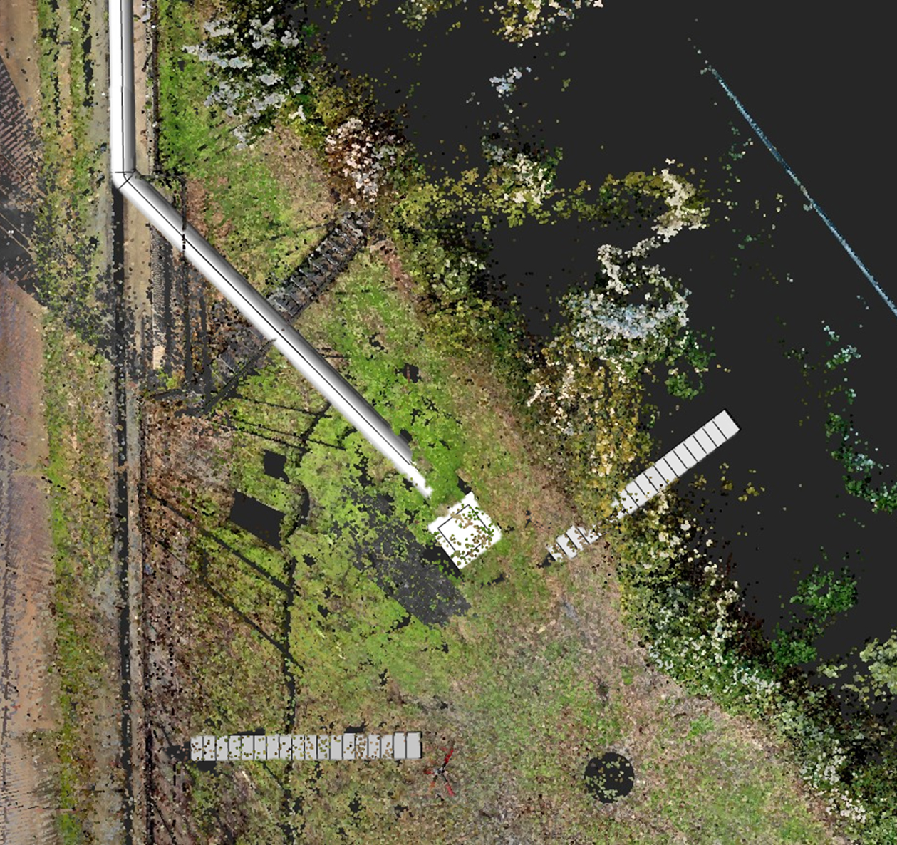 作成したモデルと現況の点群データを重ね合わせたものがこちら。