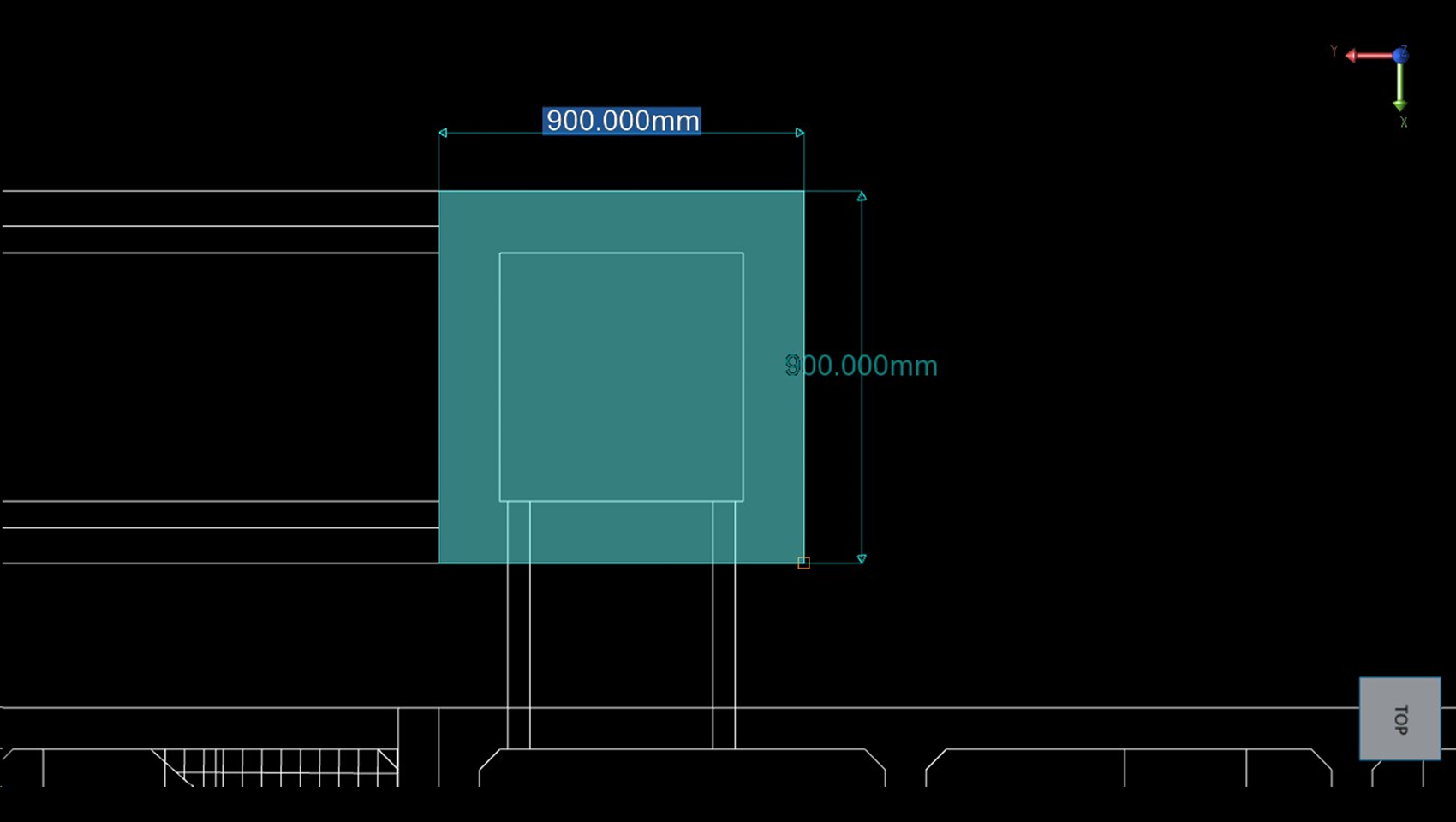 該当の集水桝(一枚目)は外形900×900×750㎜の角桝なので、図面の角と角を選択して、四角の面図形を作成します。(面図形は図面の角を拾ったり、数値を入力して作成することも可能です。)