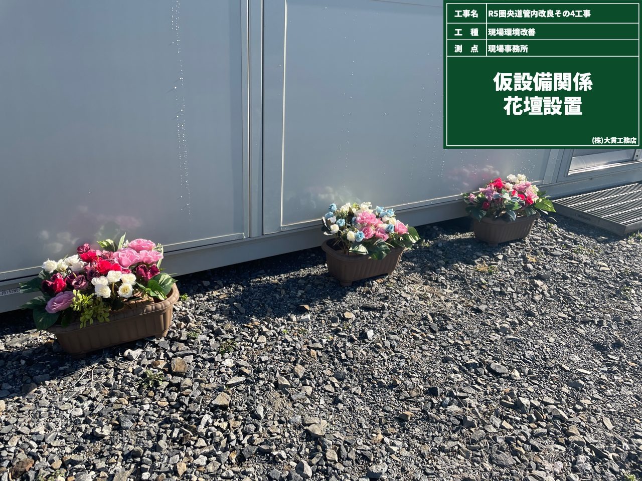 現場事務所の景観を華やかにしたい、、、そうだ花壇を設置しよう!