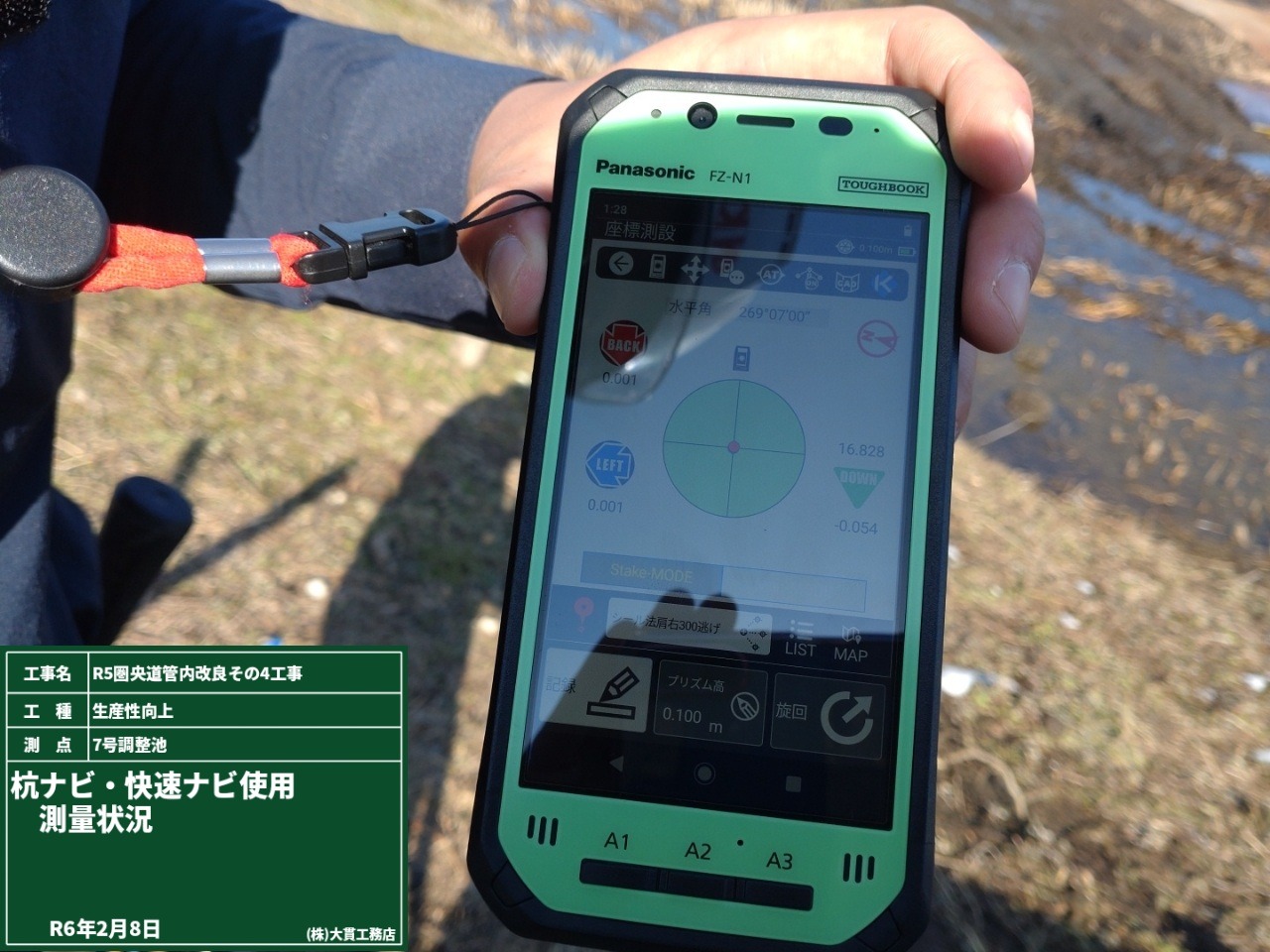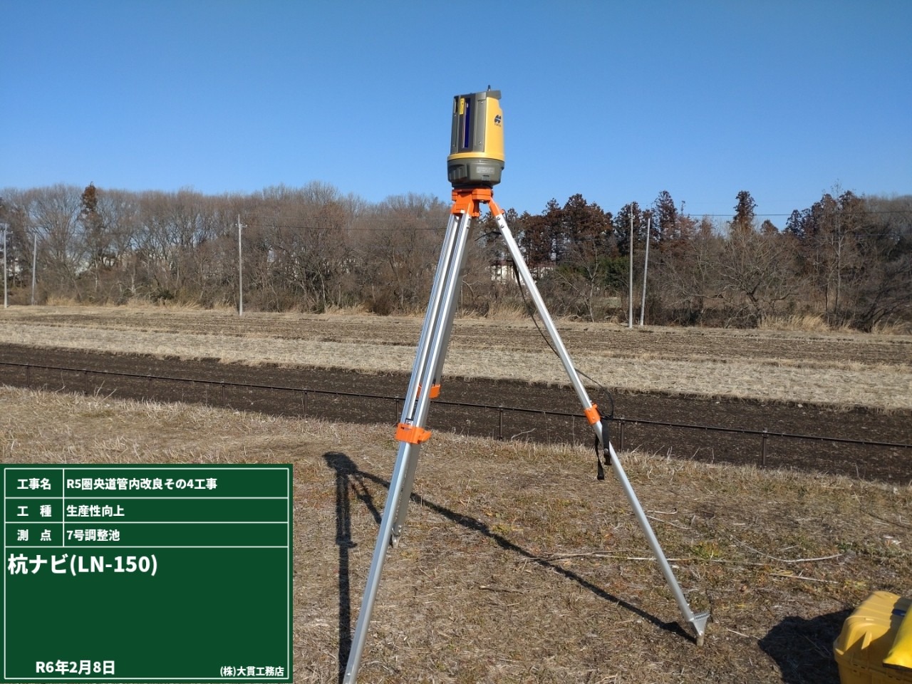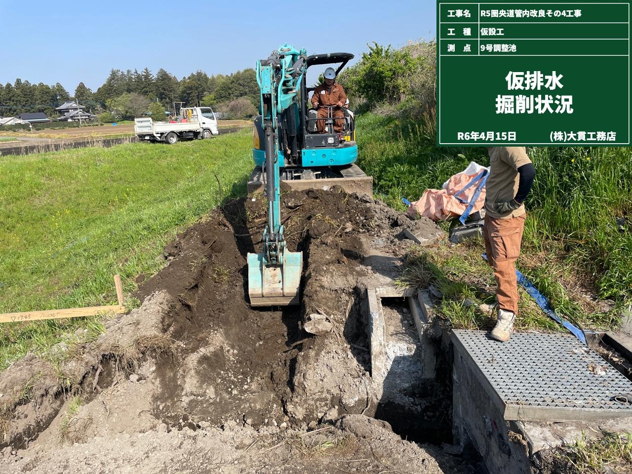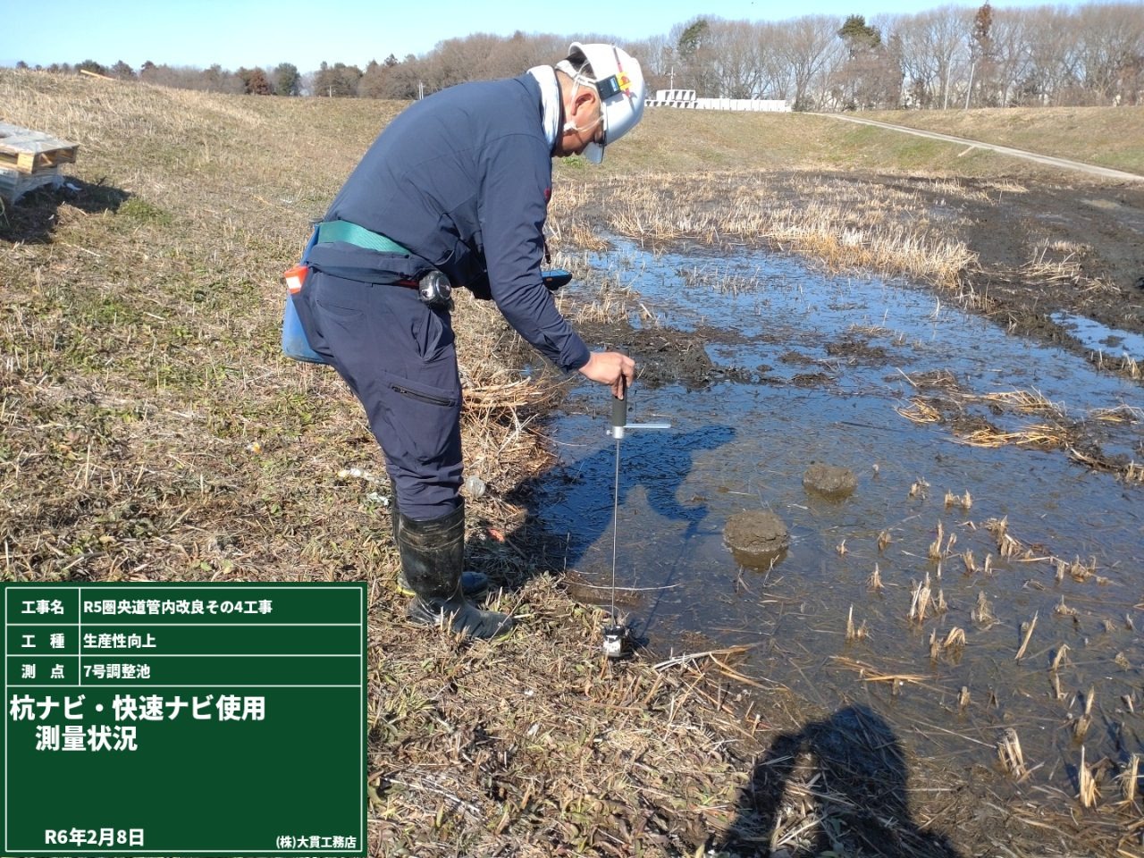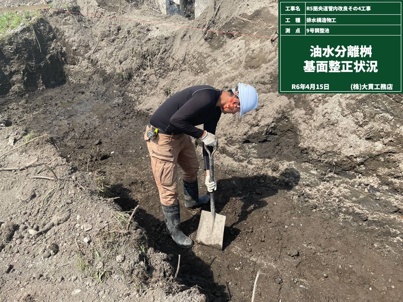 9号調整池も油水分離桝の設置をするので、設置個所を掘削・整正して計画通りになっているか計測します。