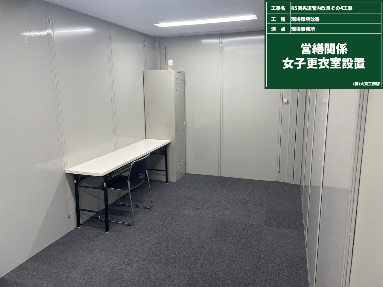 今回は私が現場代理人なので現場に更衣室を設置してみました。