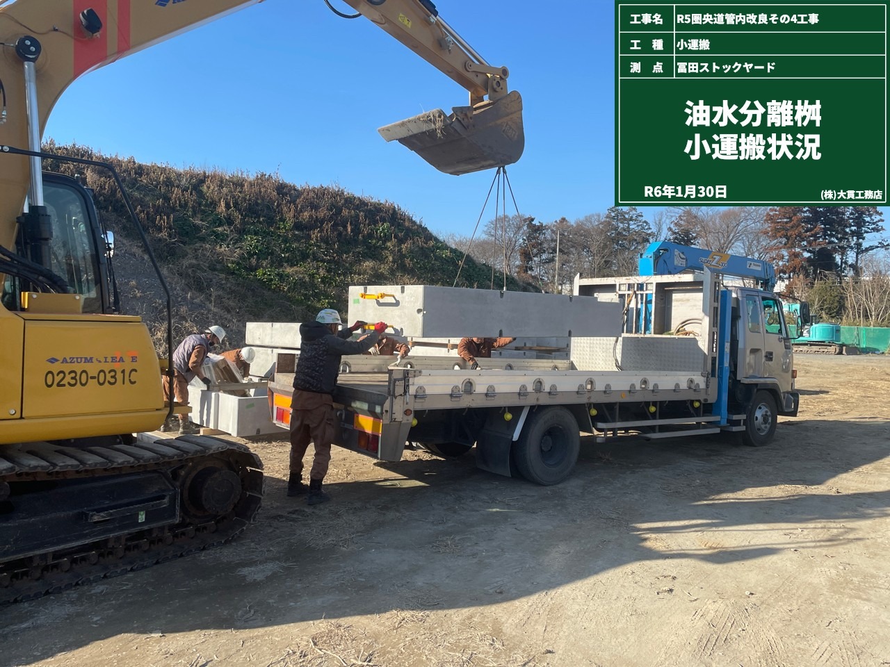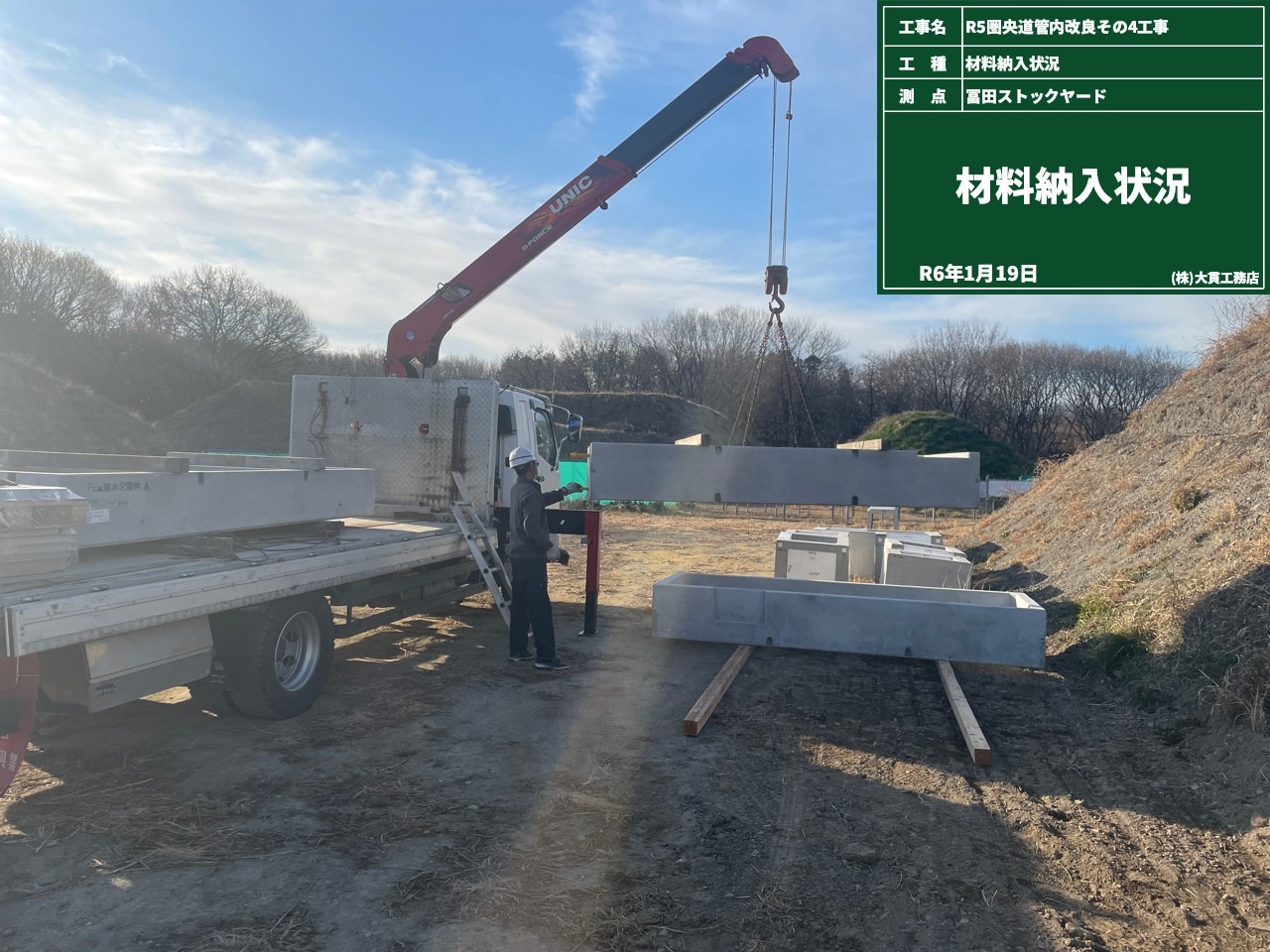 坂東ストックヤードに現場で使用する材料の運搬をしています。