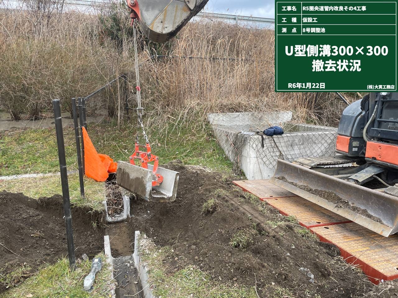 U型側溝は再利用するため1本1本丁寧に撤去していきます。