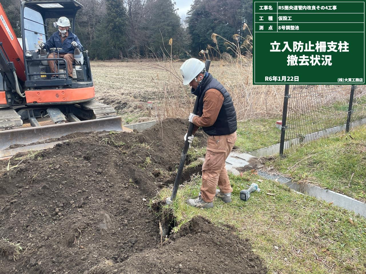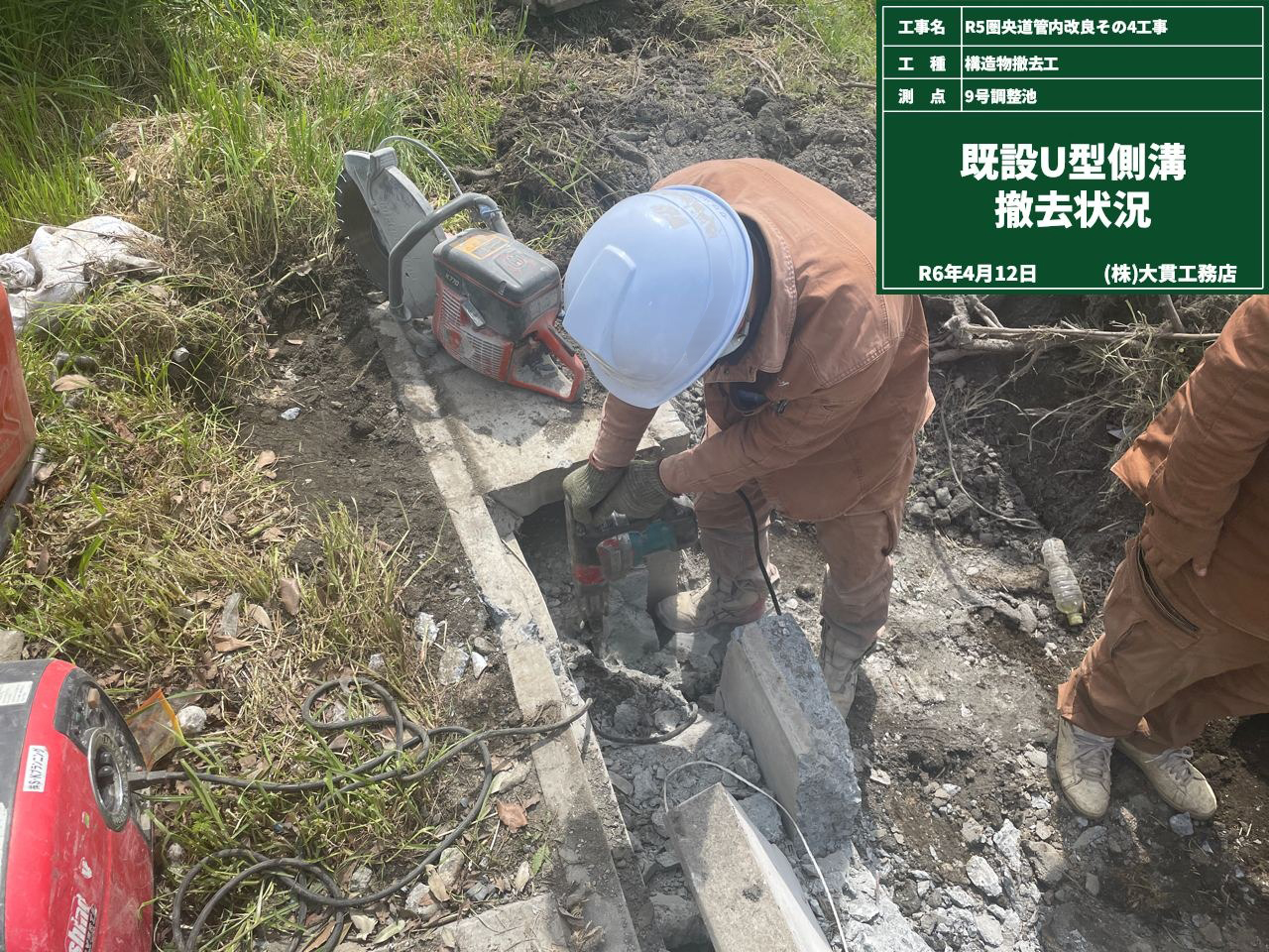 施工の妨げとなる立入防止柵とU型側溝の撤去です。