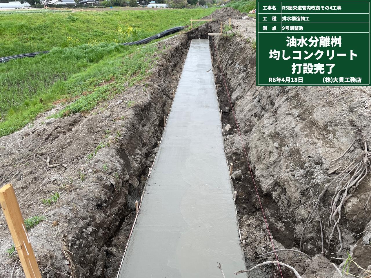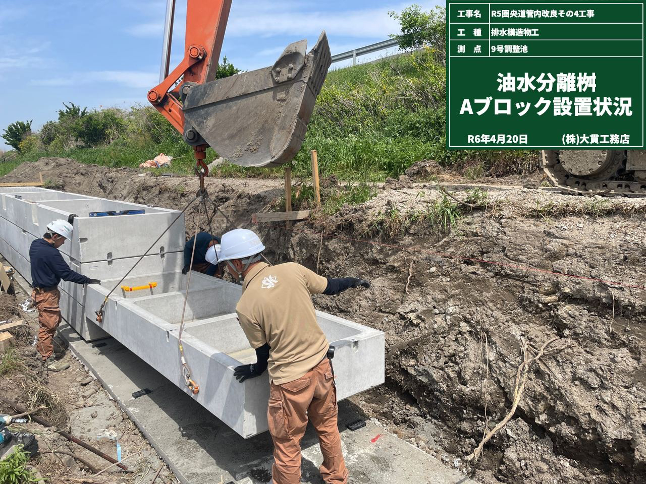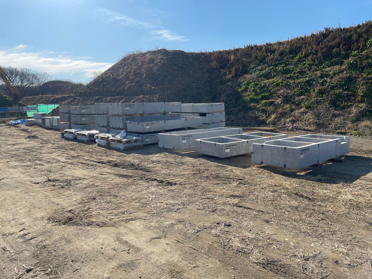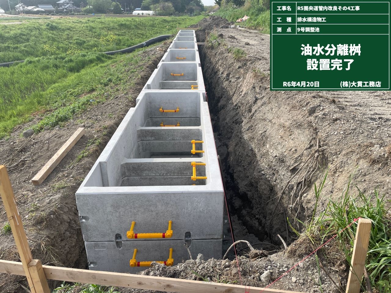 基礎まで終わった9号調整池もあっという間に油水分離桝の設置が完了しました。