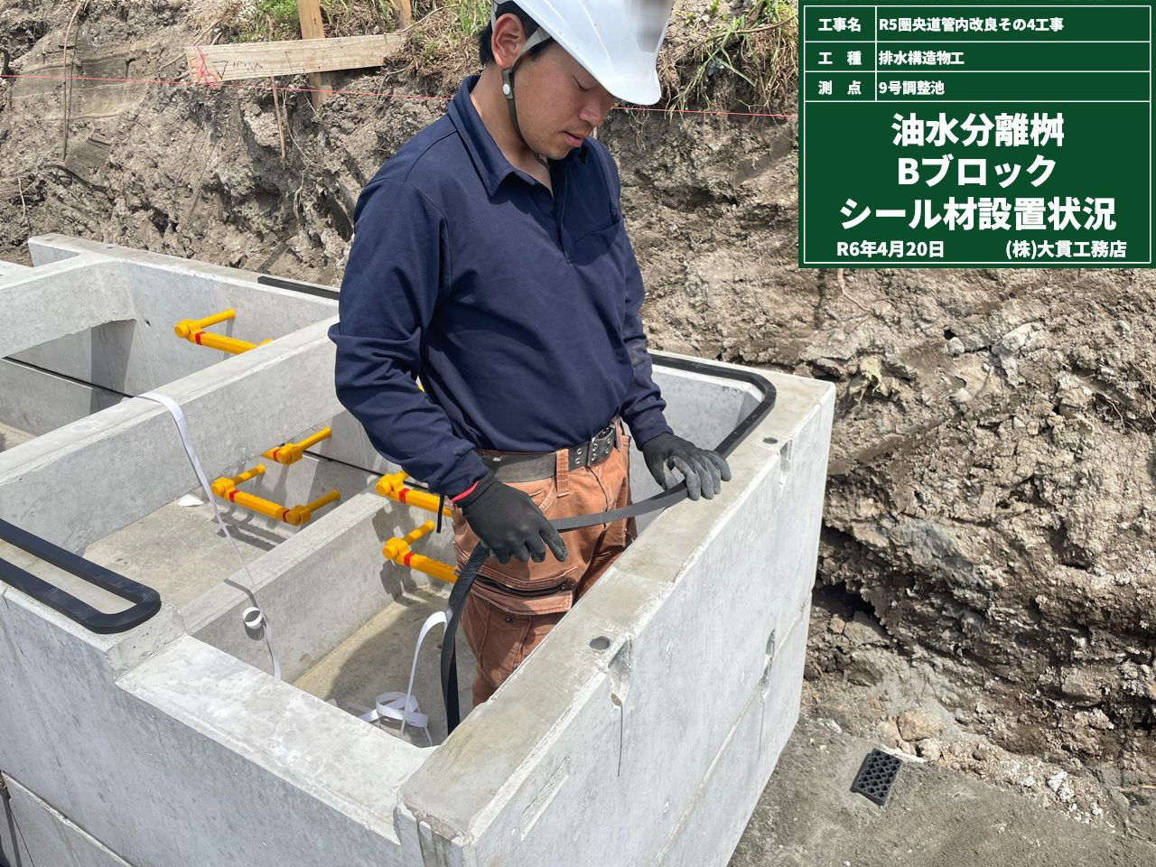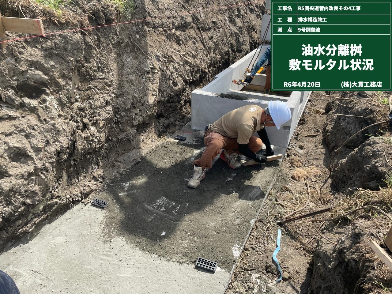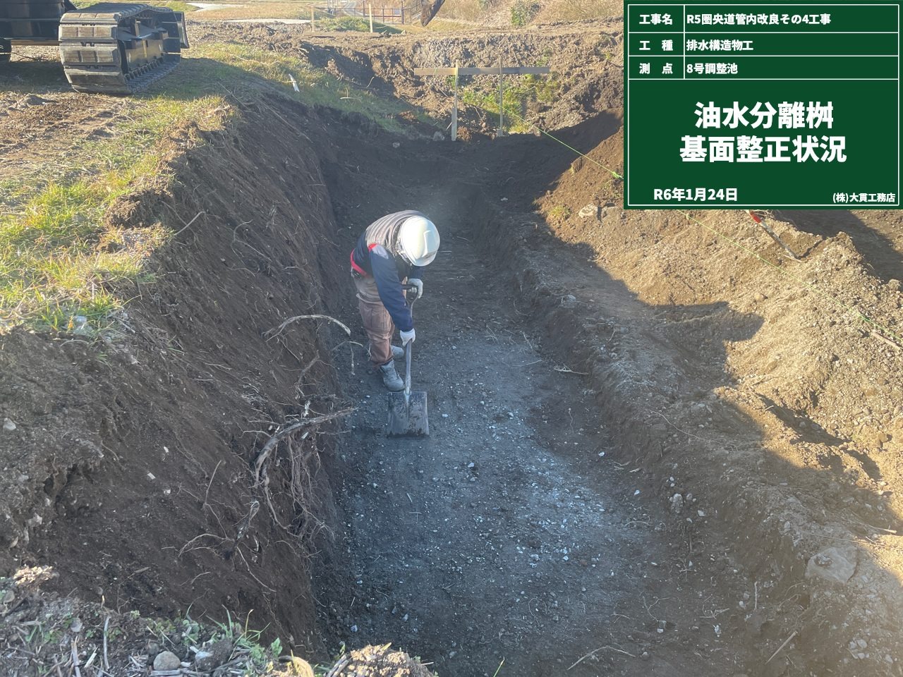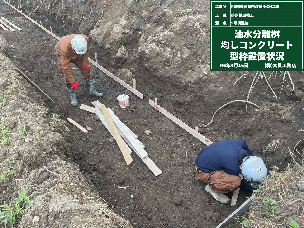 基礎まで終わった9号調整池もあっという間に油水分離桝の設置が完了しました。