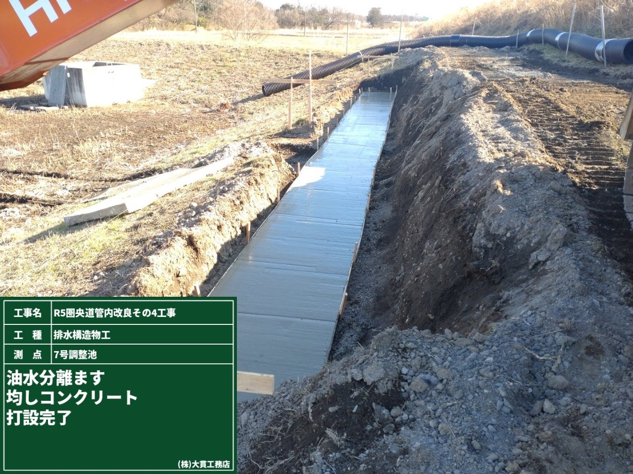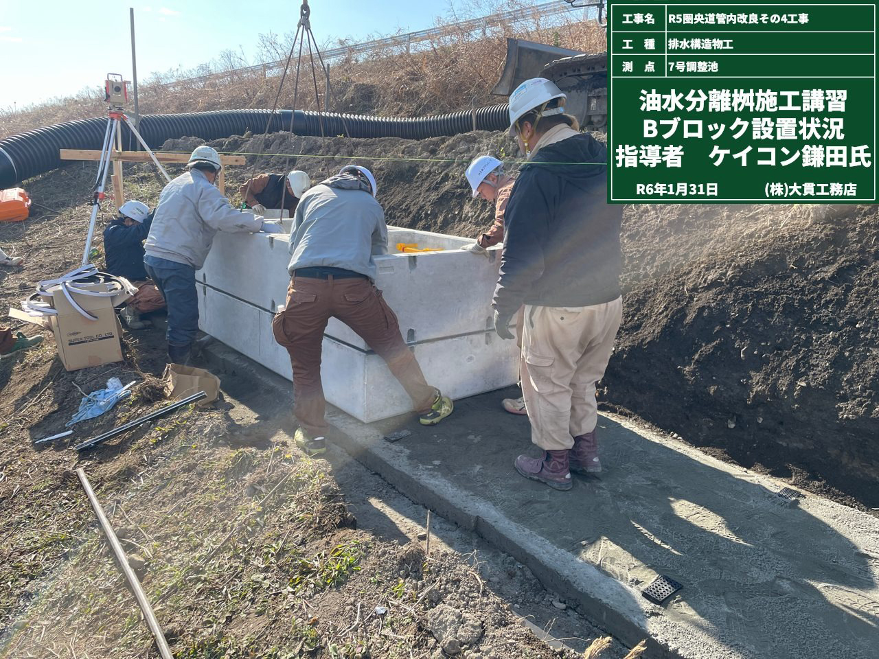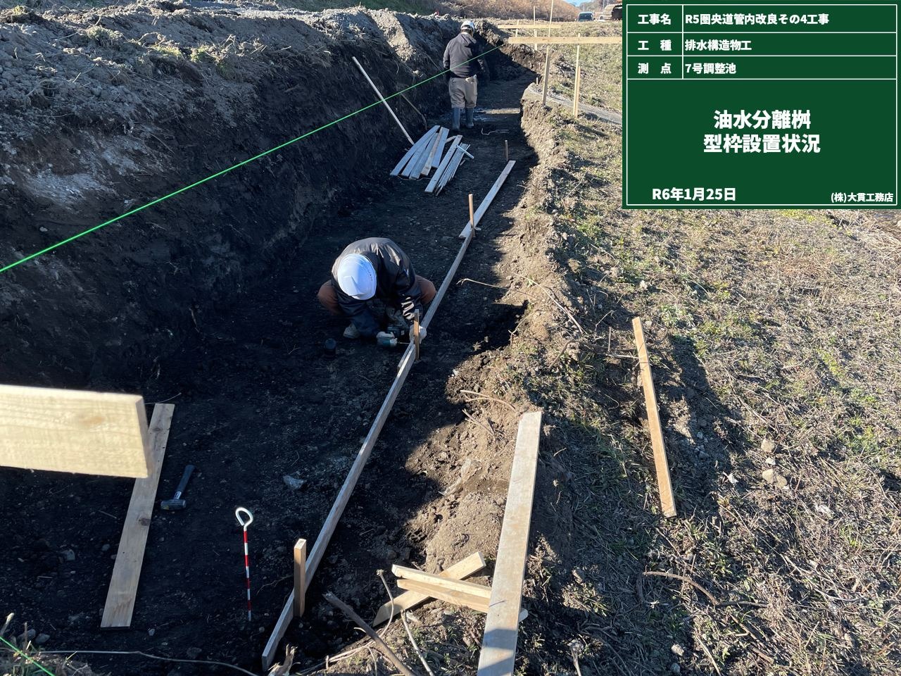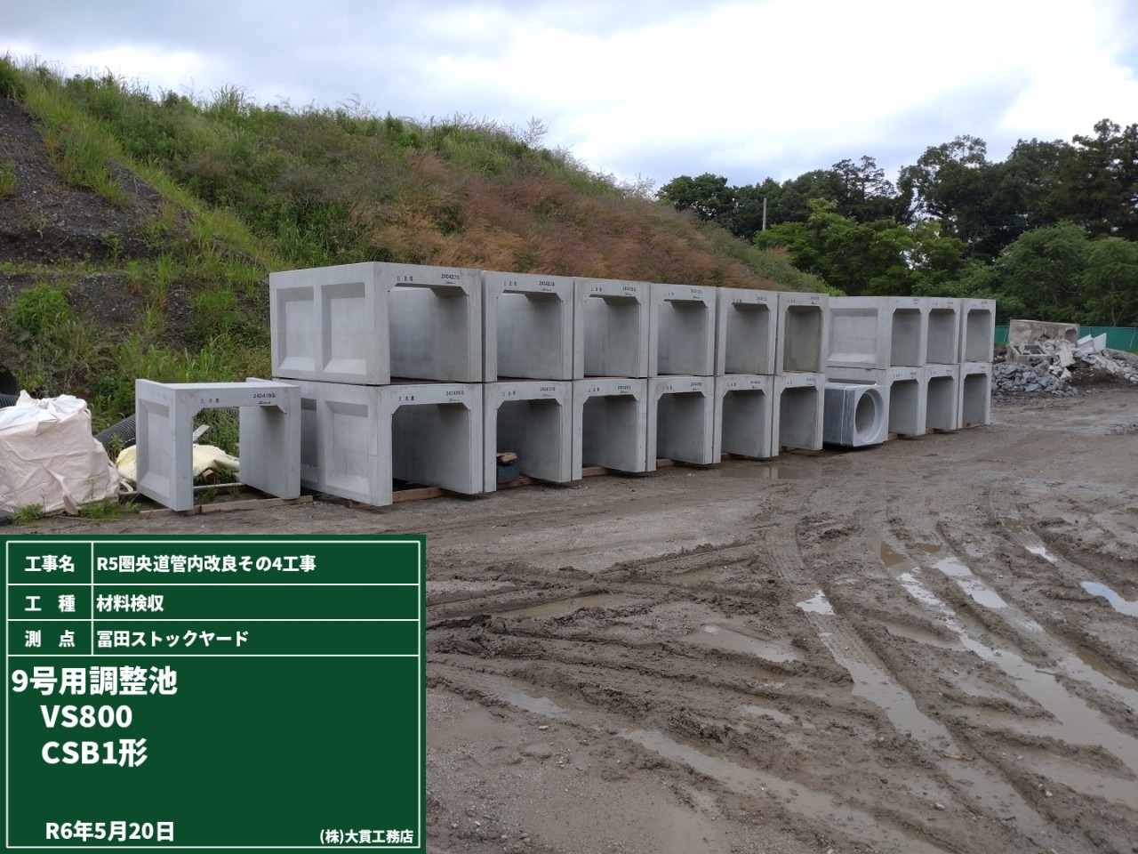 基礎まで終わった9号調整池もあっという間に油水分離桝の設置が完了しました。