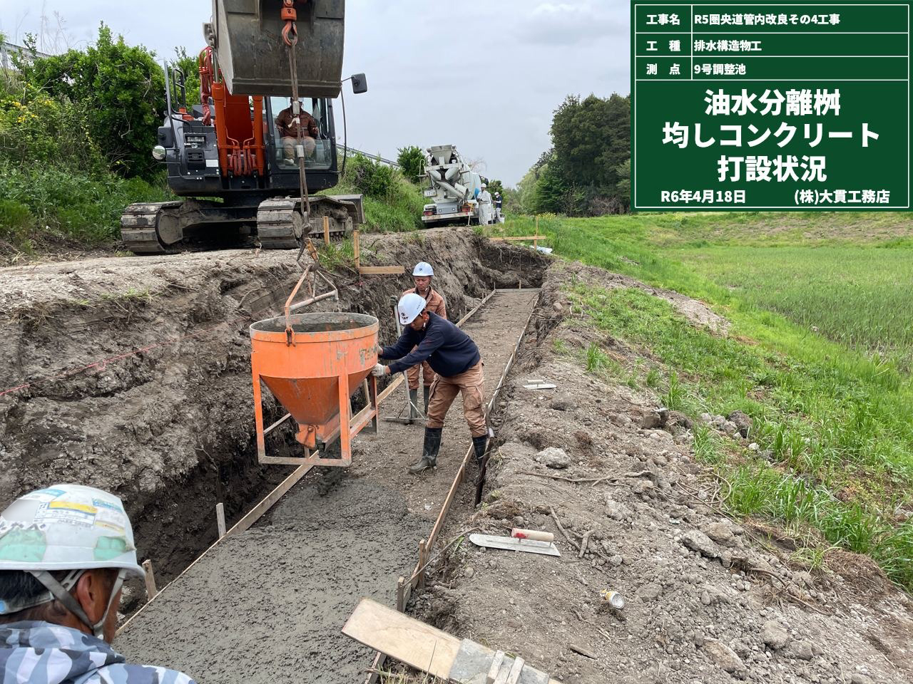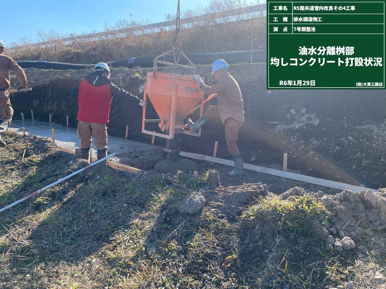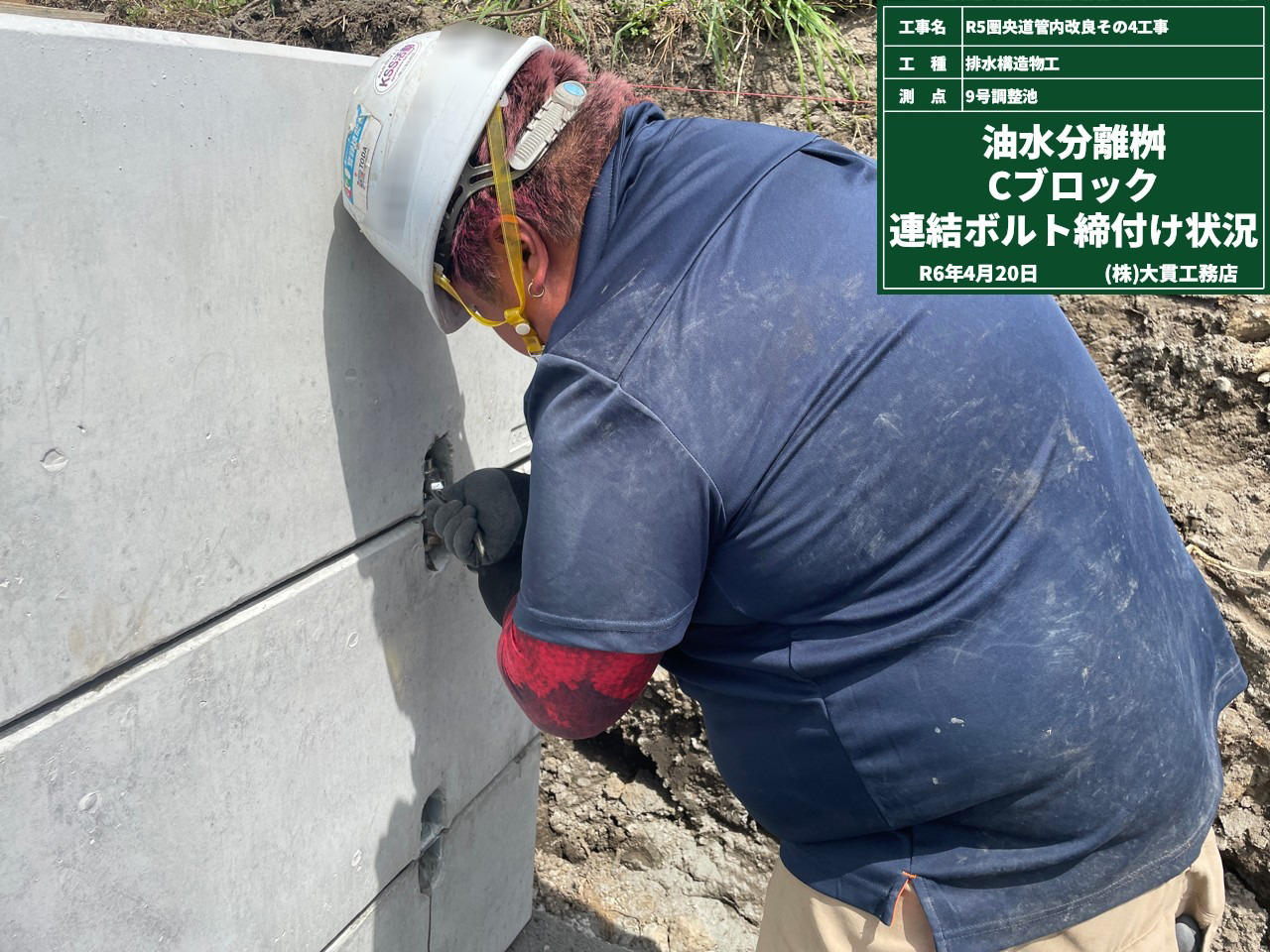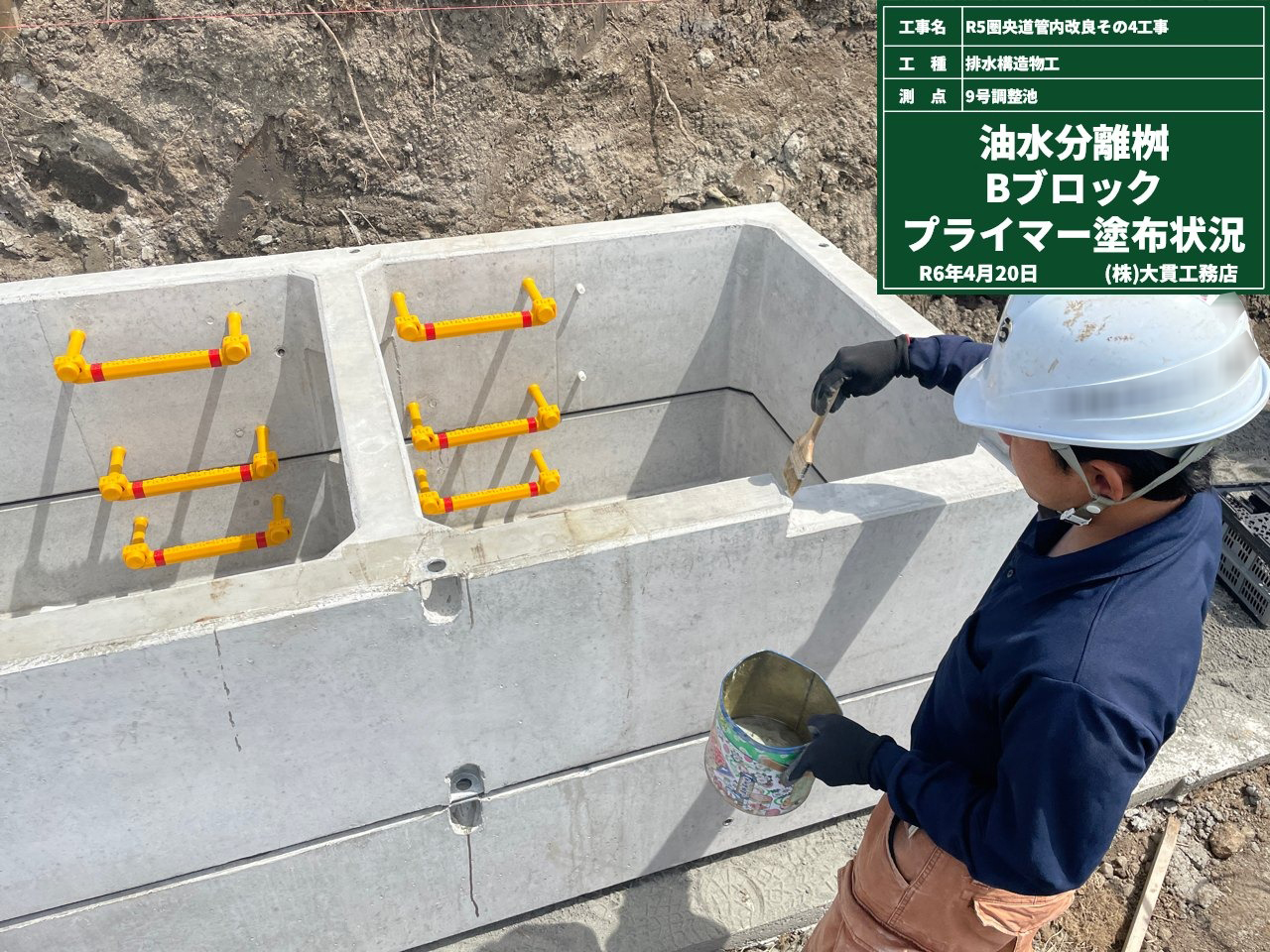 基礎まで終わった9号調整池もあっという間に油水分離桝の設置が完了しました。