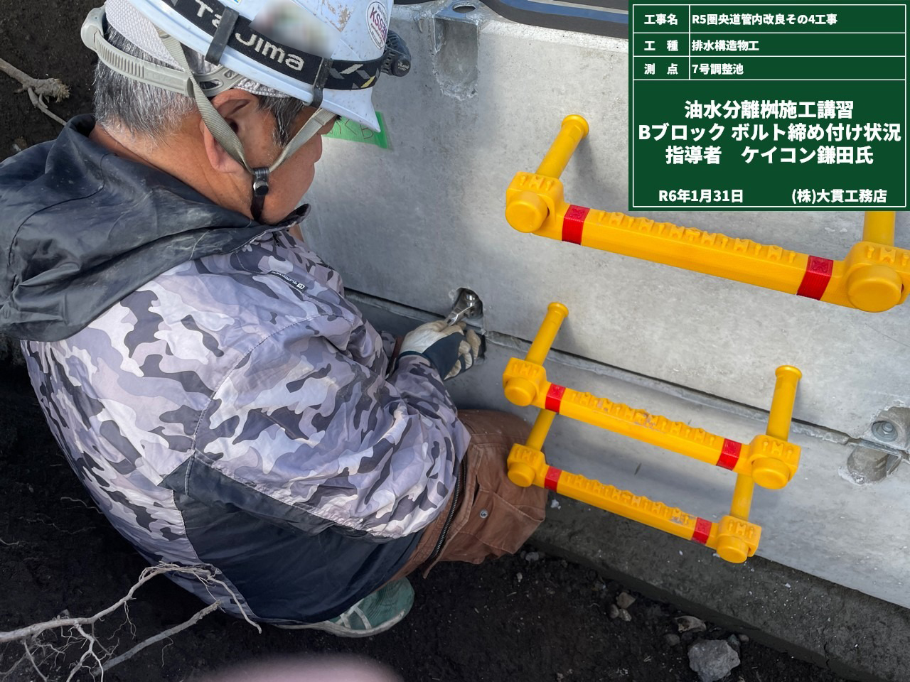 7号調整池の時に受けた講習通り、今回も手順を間違えないように設置をしていきます。