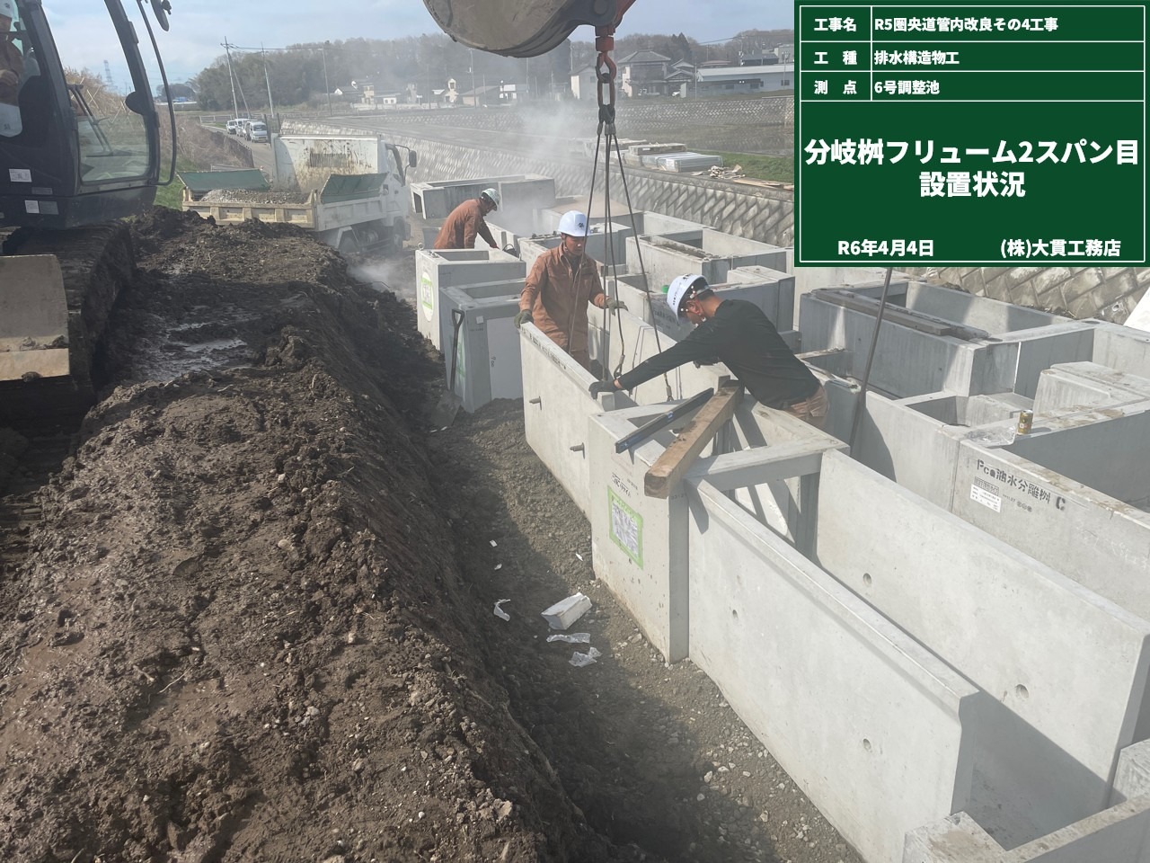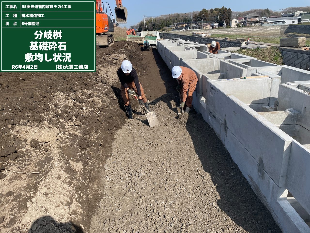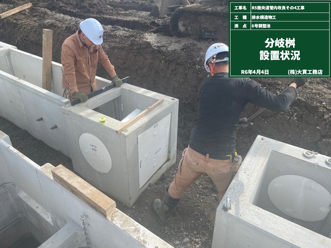 7号調整池でも記事で少しお話しましたが、写真は6号調整池の分岐桝の設置です。