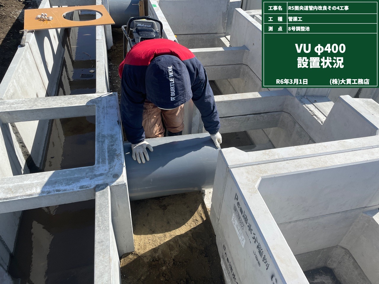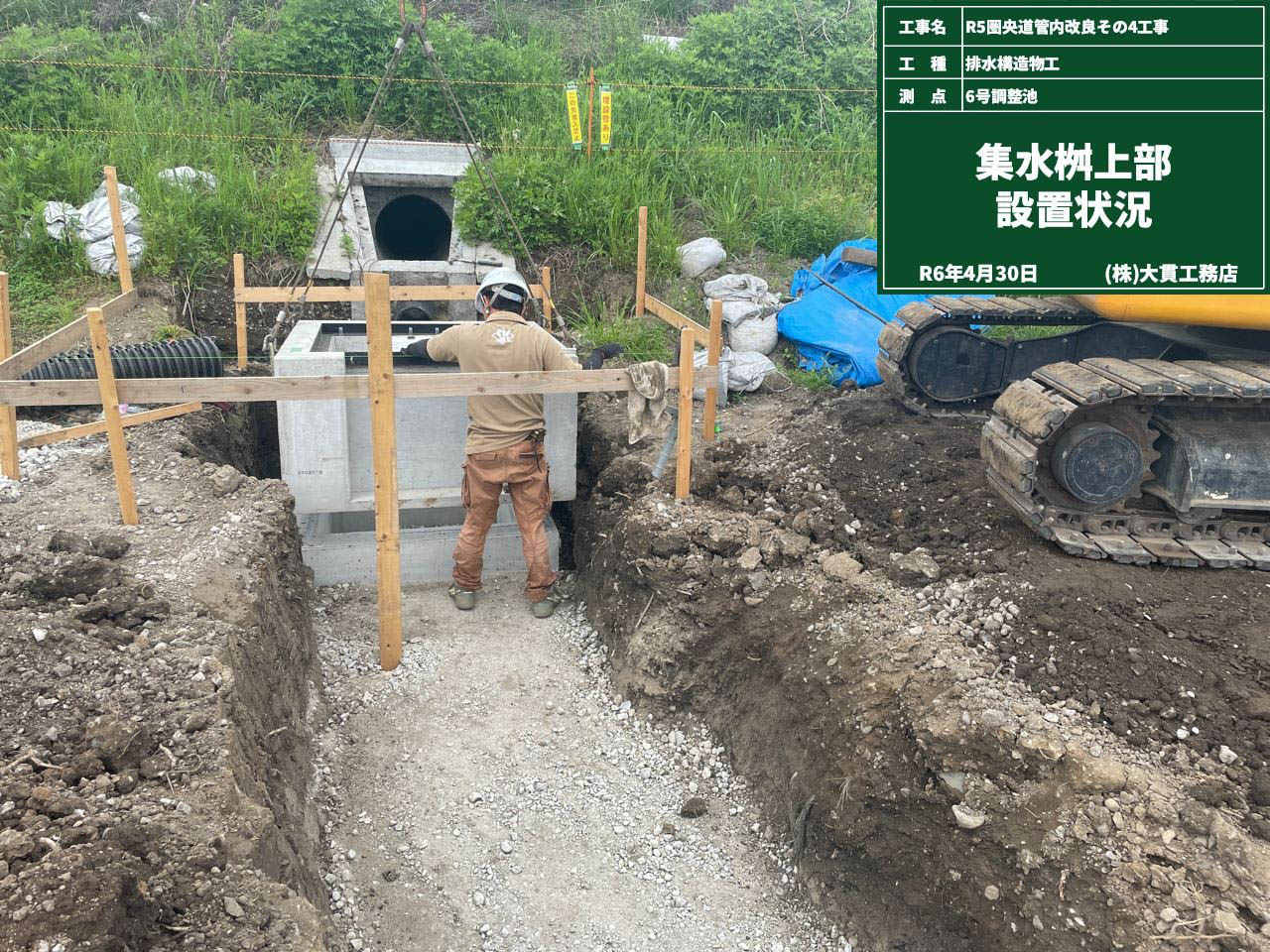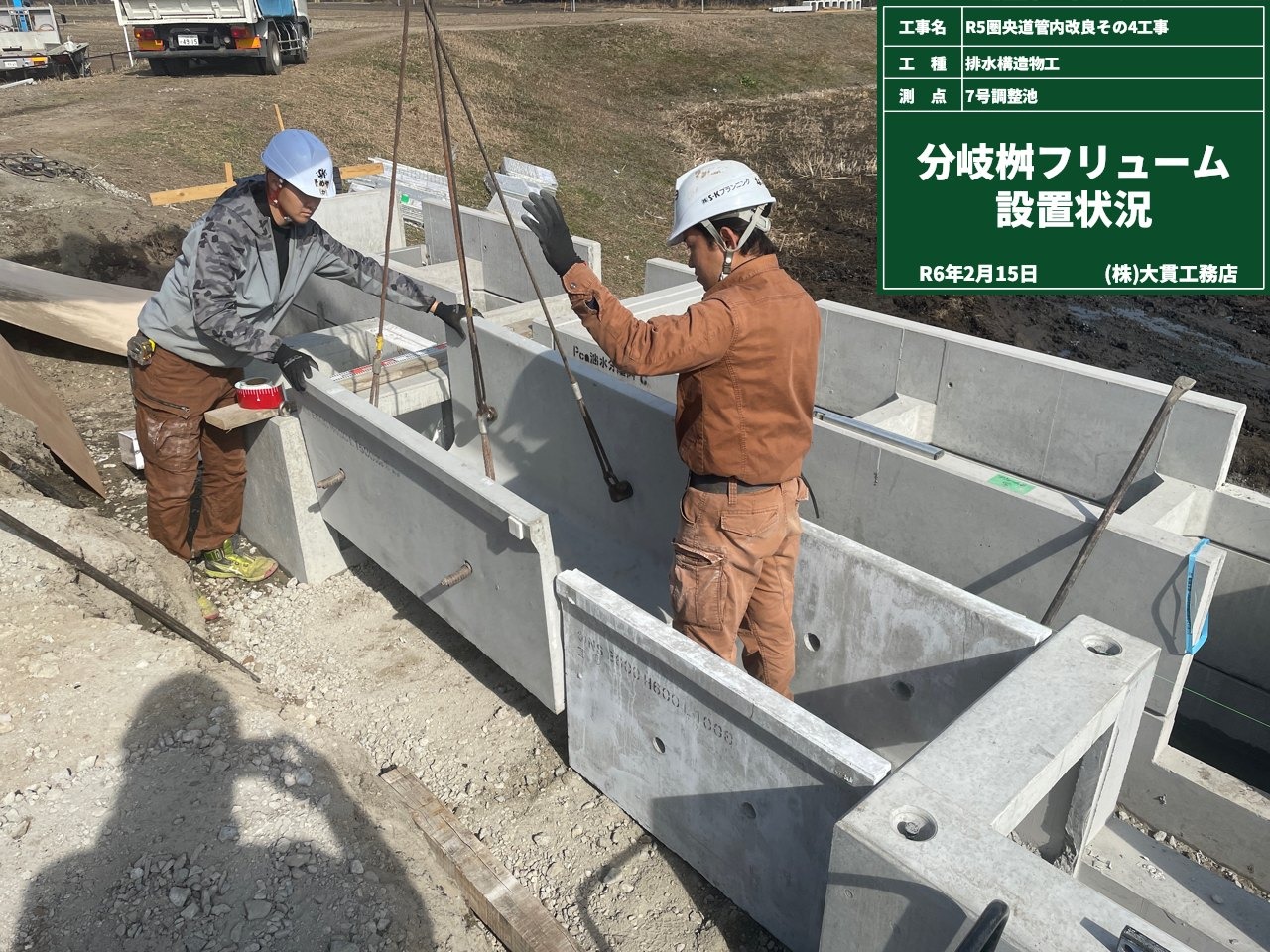 7号調整池でも記事で少しお話しましたが、写真は6号調整池の分岐桝の設置です。