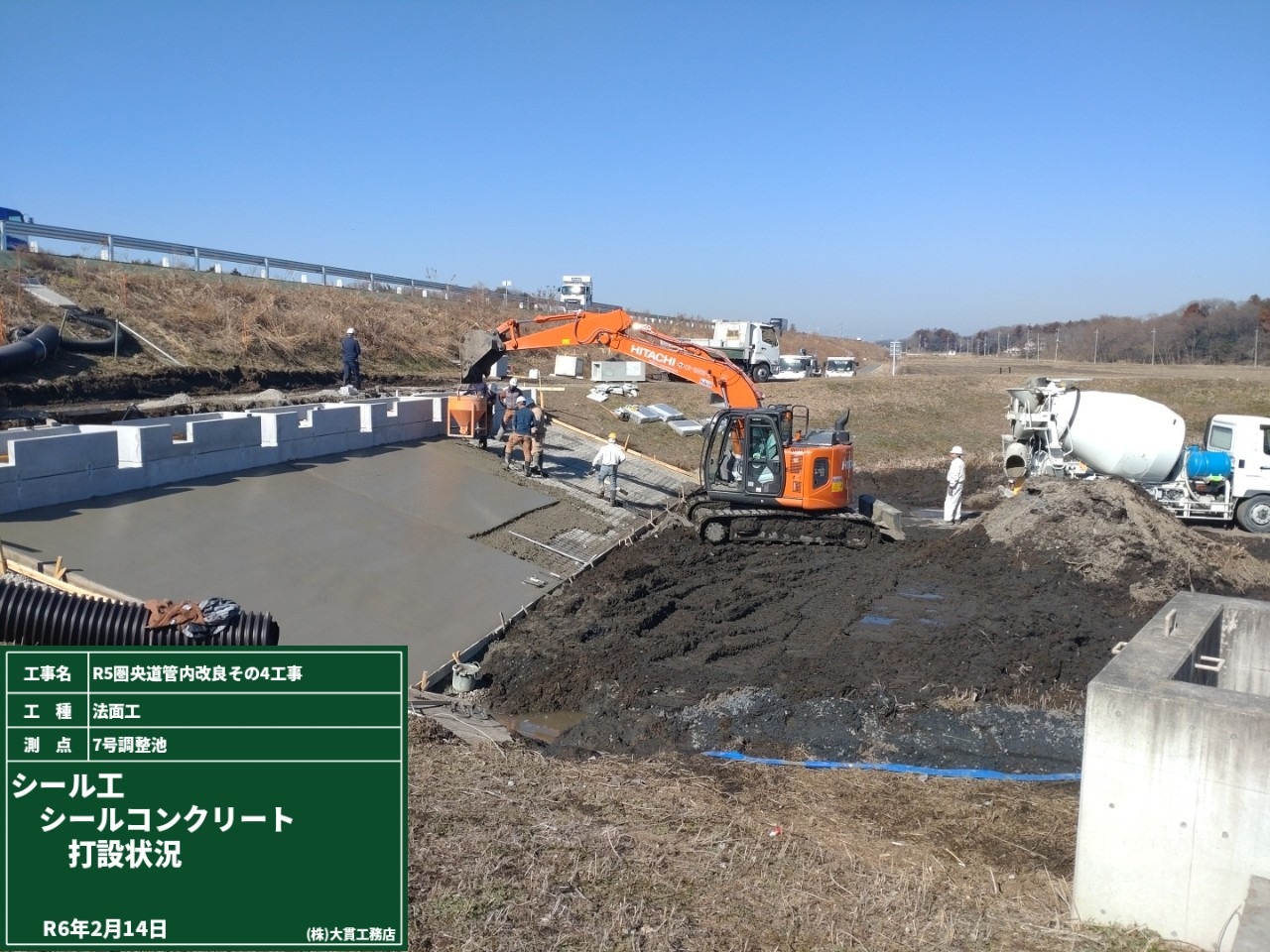 これをシールコンクリートと呼び、法面が流水によって削られないようにするために施工します。