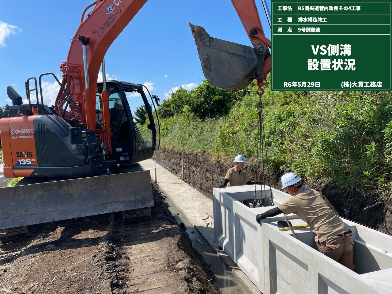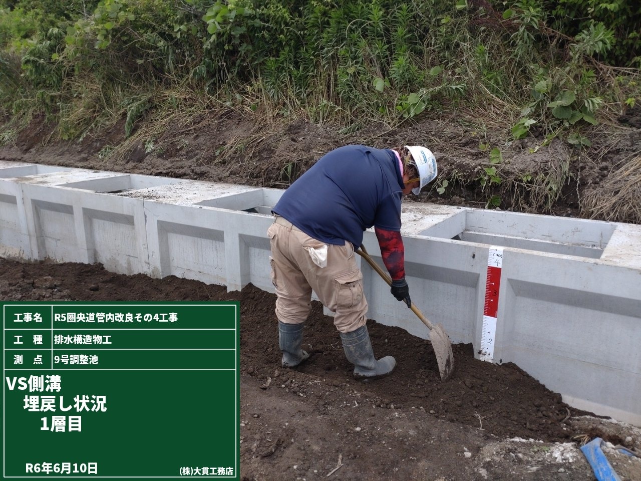 連日ご紹介しているVS側溝も、いよいよ埋戻し作業に入りました。