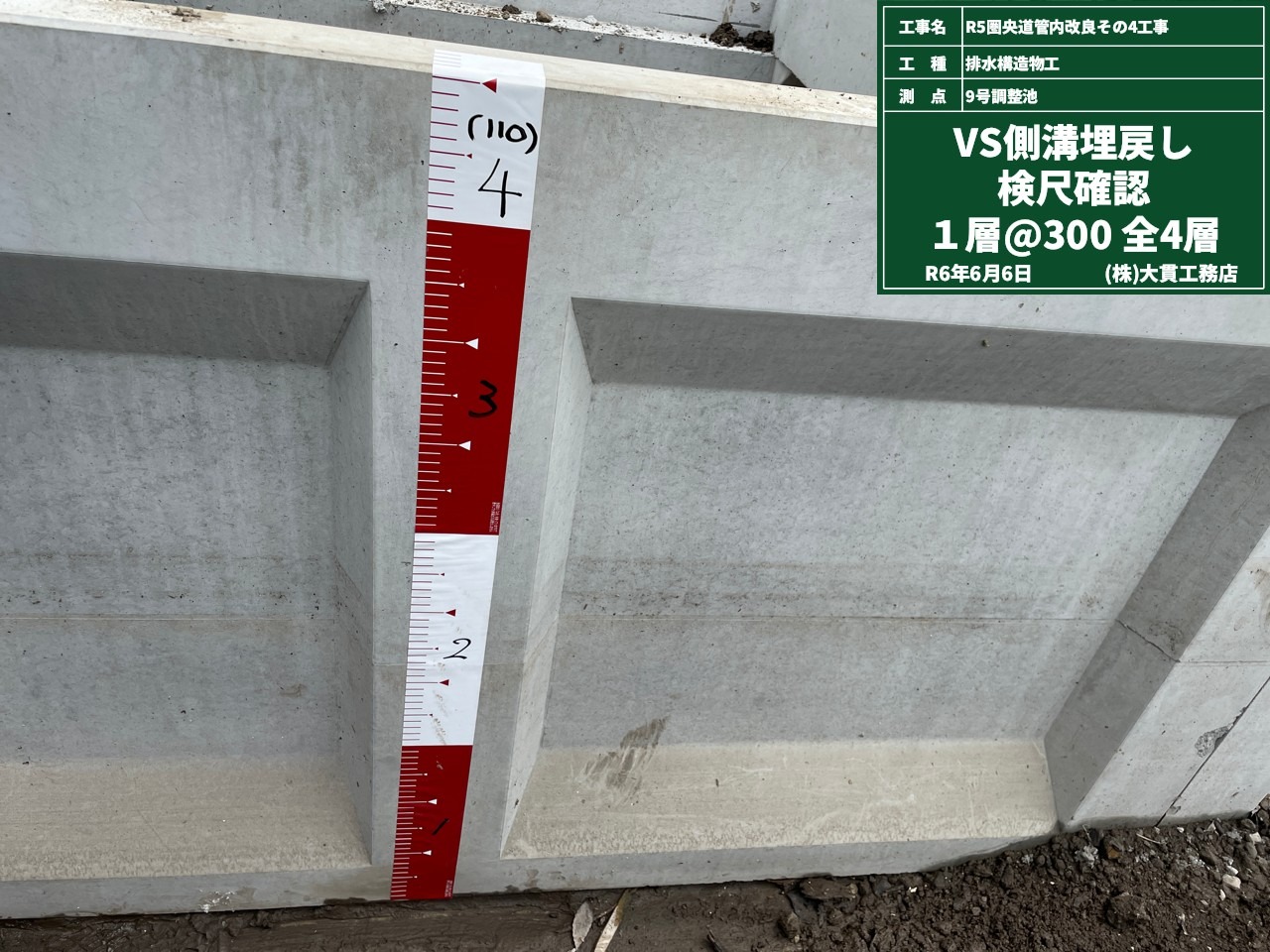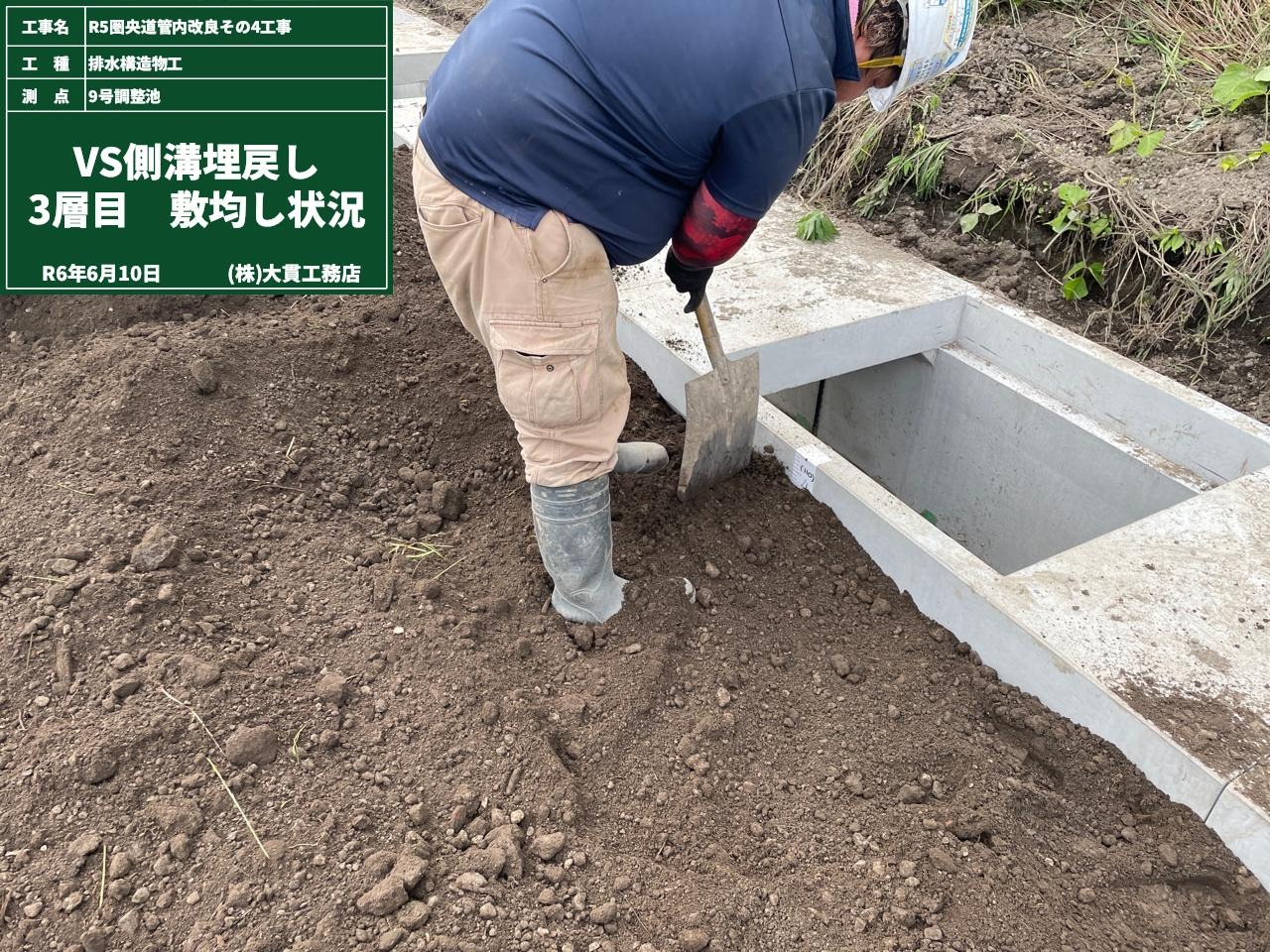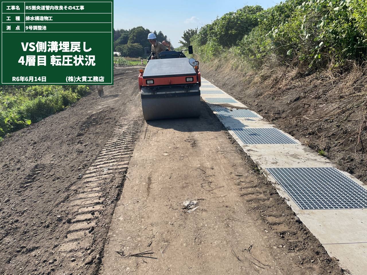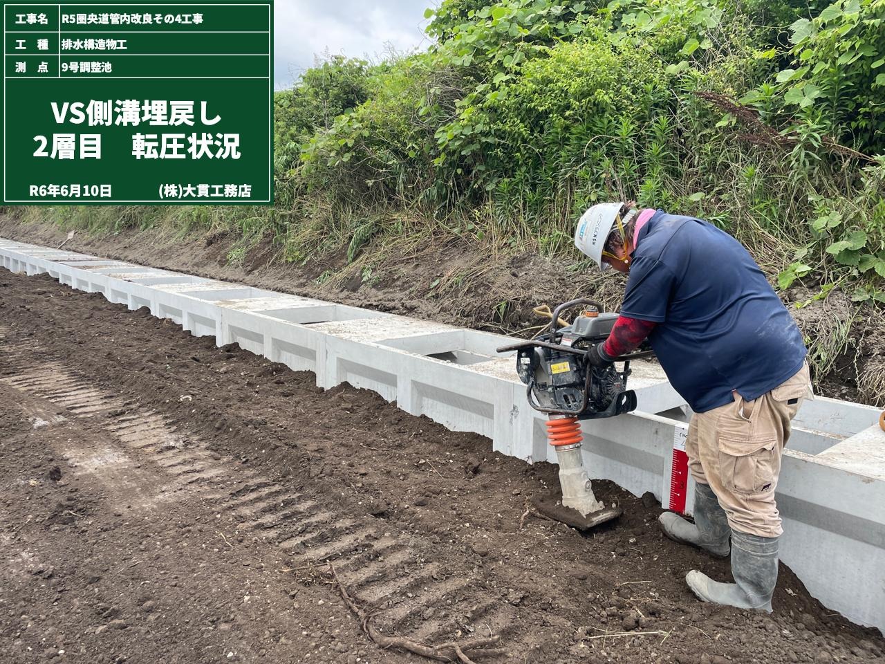 ちなみにこの埋戻し作業、片側だけ行うとVS側溝がズレる可能性があるため、両側を同時に行うんです。