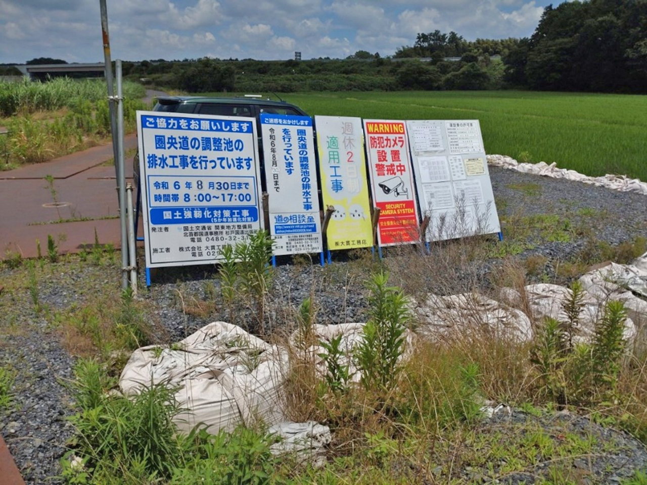 昨年から始まった調整池の排水工事と周辺の舗装工事が8月末で完了いたしました。