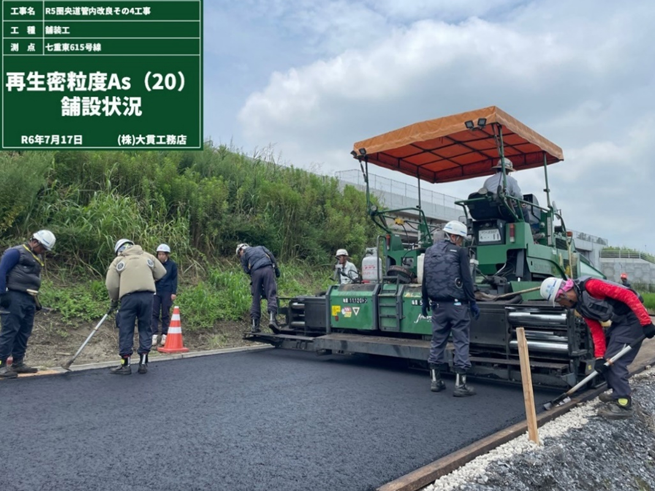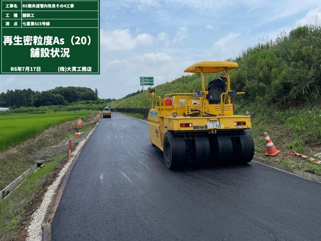 そして表層工事です。今回の舗設箇所は車の使用頻度が少ないので、Asは表層の1層のみです。