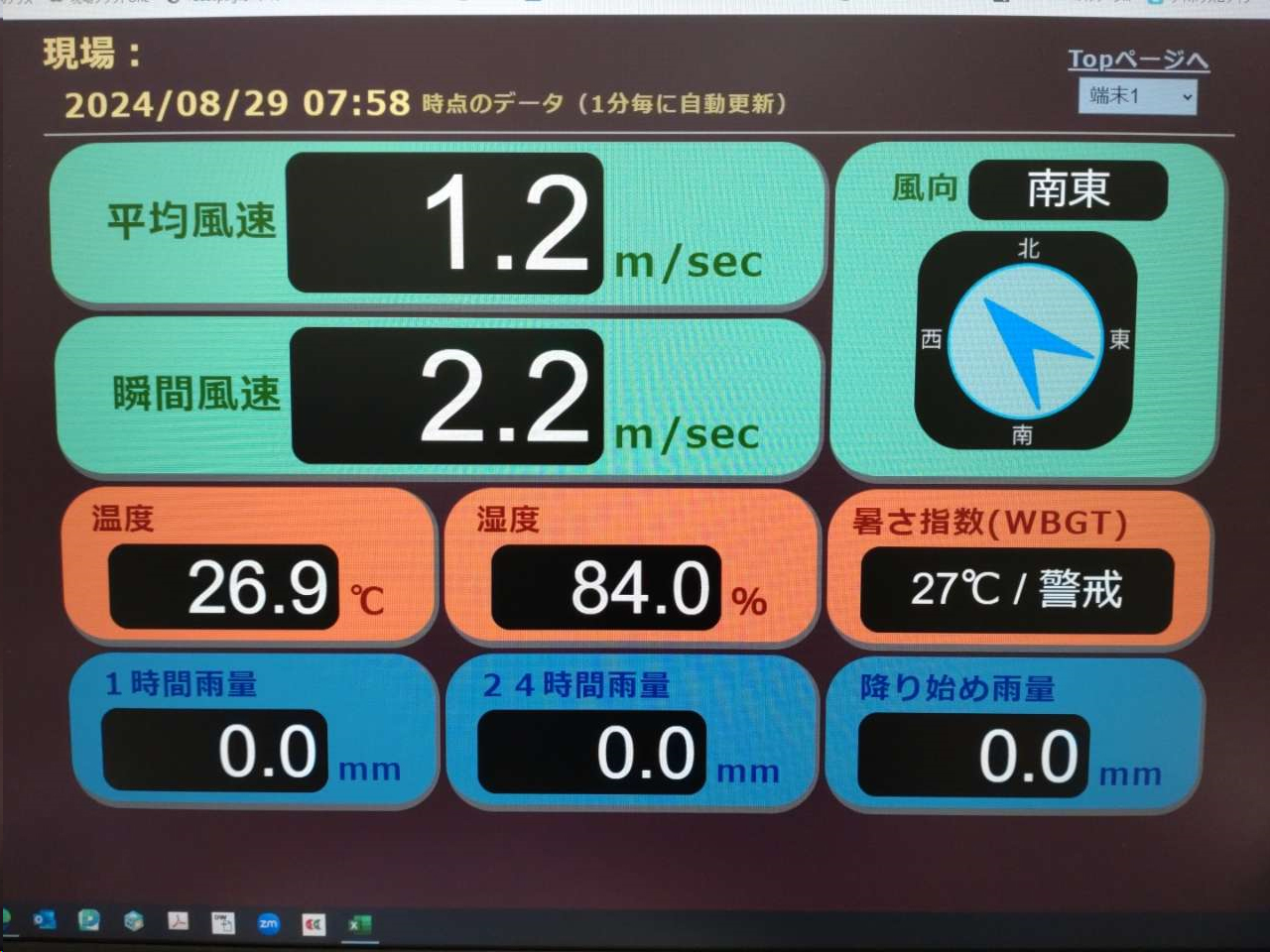 現場の熱中症予防、風速の監視、雨量の監視、水位把握などの安全管理に活用しています。