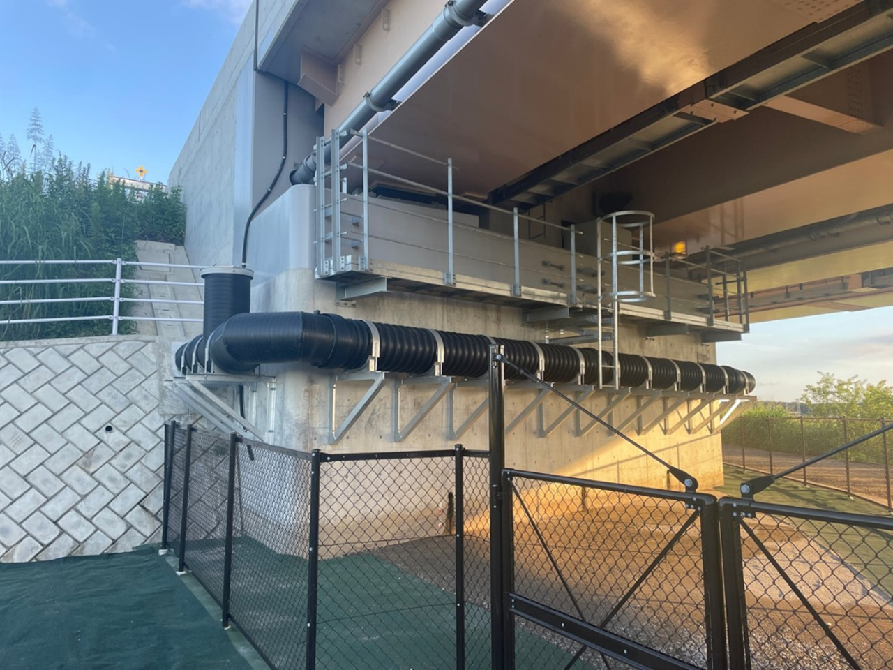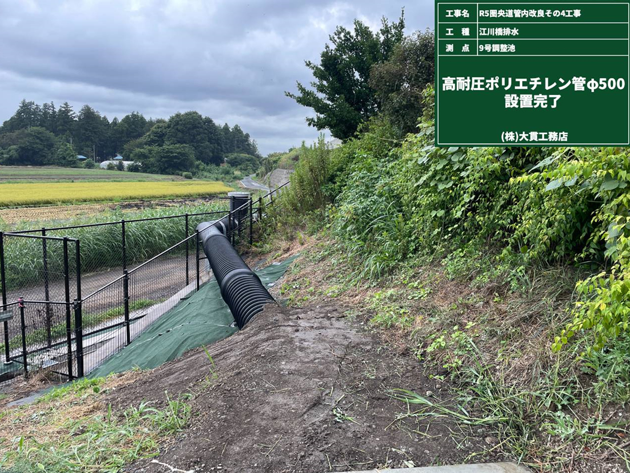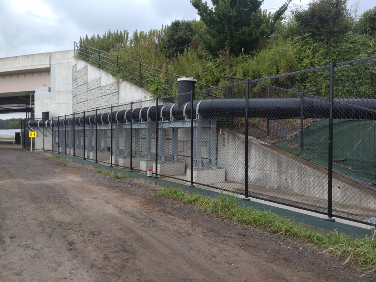 江川橋橋台と9号調整池の間にある「補強土壁部」にも排水管を配置します。